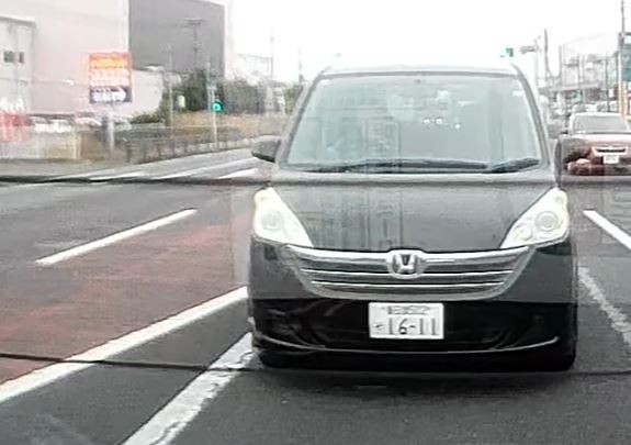 停止状態から無理な車線変更をしてきた。危ない。