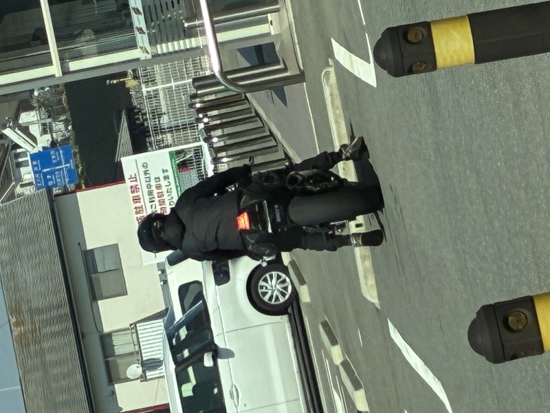早朝の真っ暗な中死角から飛び出して来た目無しのaho、モロ危険人物。黒のタント