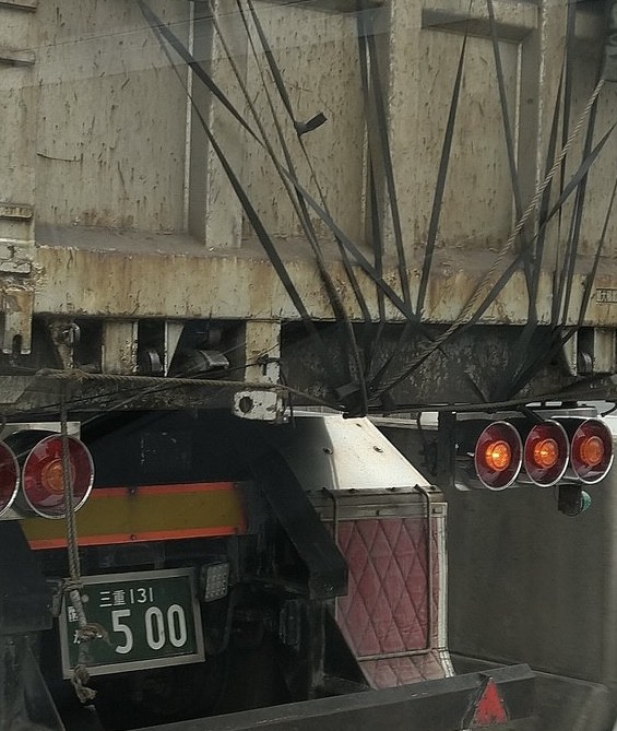トラックに対して長時間の車間詰め、イエローラインを跨ぎながら左右にフラフラ走行