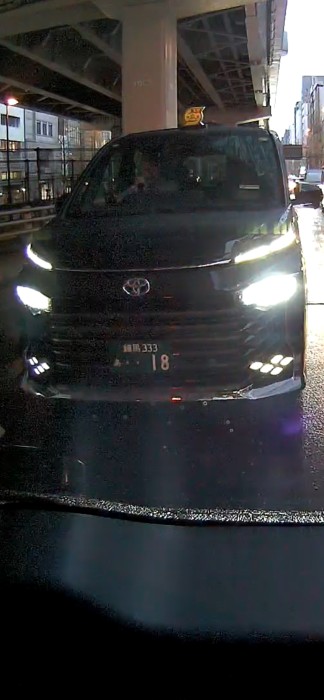 威圧的な運転で、停止時はベタ付け。リヤカメラに気付いたのかおとなしくなった。