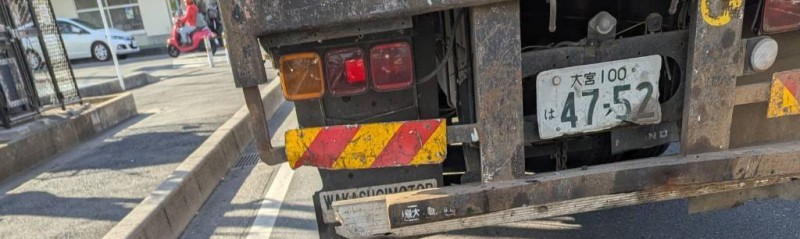 過積載疑い。 タイヤはたわみ、速度も15〜20kmほどで低速過ぎて渋滞を作るような運転。