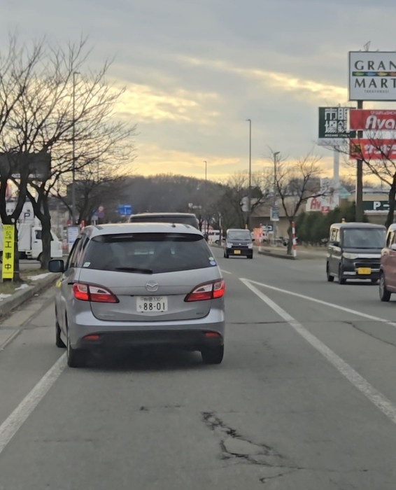 • 当該車両が当方の前を走行。前の車両にビタ付けで5kmほど走行。その後ちどり食堂前の30キロ制限区間を60キロ以上出し追い越し、その後猛スピードで走行。追い越し禁止区間ではないがかなり危険な走行。要注意