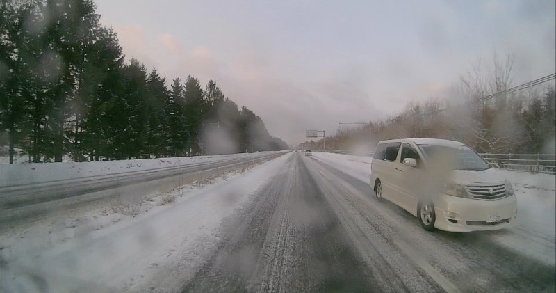 • 滑りやすい雪道で猛スピードで走行。 10系オンボロファード