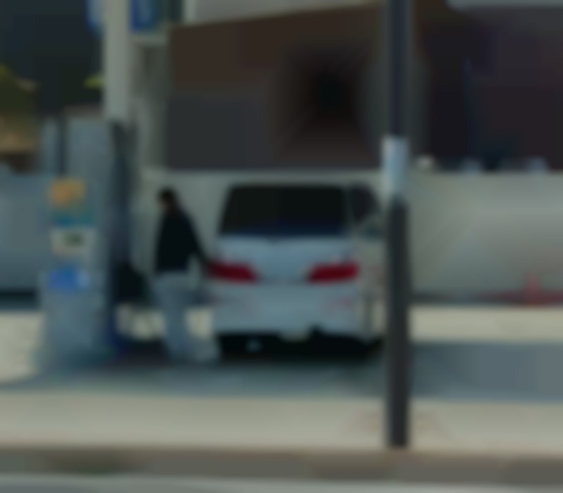 高松自動車学校前の細道で、バス停に停車していたバスを強引に追い抜き、対向車と正面衝突しそうになっていた。ジムニー1118、スペアタイヤなし