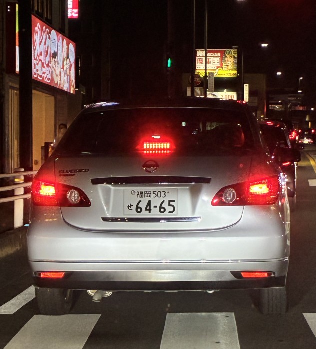 路側帯を踏む勢いで左寄り走行、ナンバー灯切れ整備不良のシルフィー
