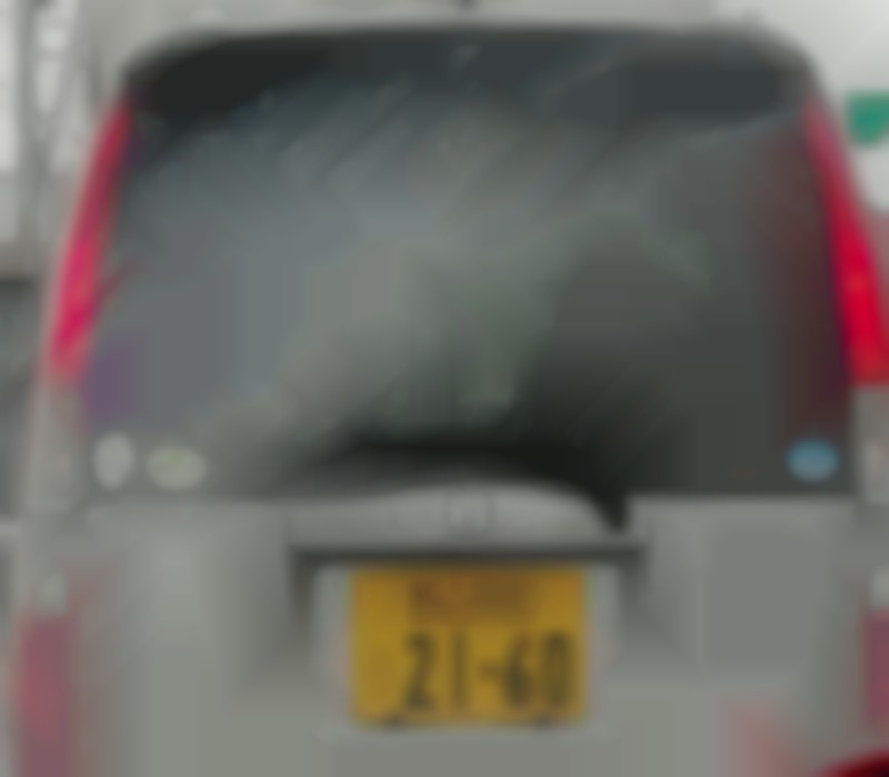 運転代行のマル○代行、ナンバー灯、左の車幅灯が切れている。