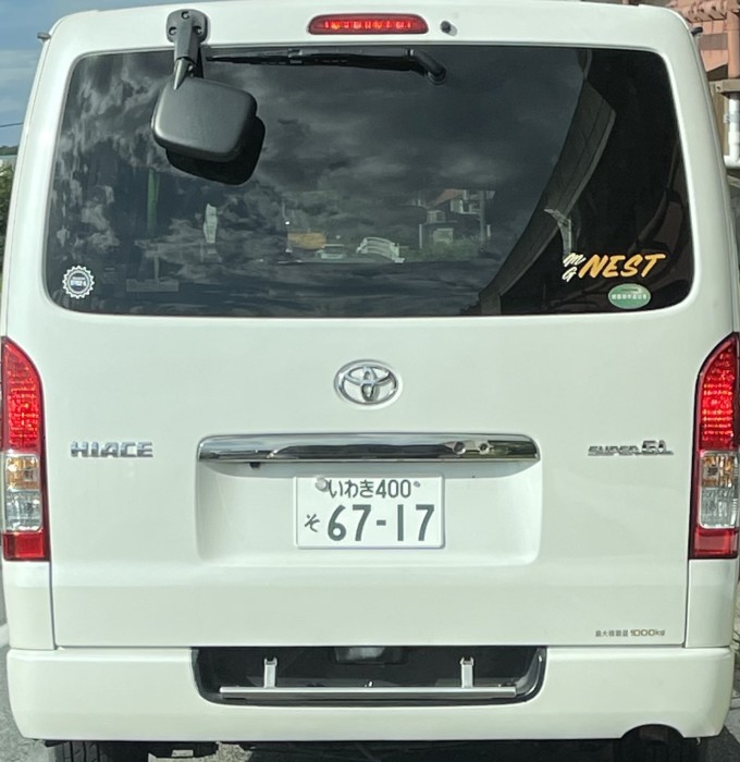 いわき430す3367、白のハイエースです。早朝いわき市から双葉郡に向かいます。煽りではないですが、常に火の付いたタバコを投げ捨ている放火車両です。何度も目撃しています。今朝は私の車両に火の付いたタバ
