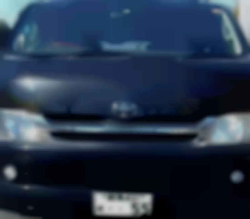 ながらスマホ常習者の水色のハイエース 社名入り
