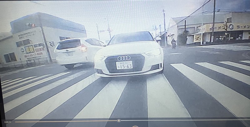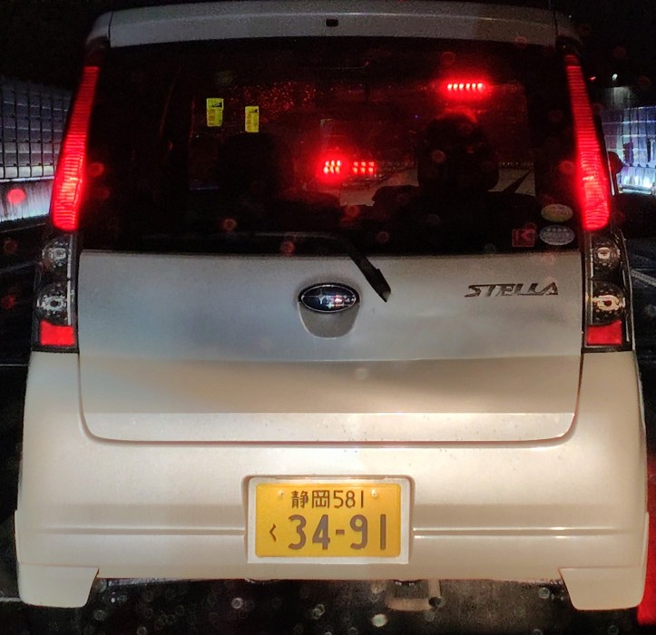 焼津にて信号待ちしてると後方から勢いよく隙間を抜けてきて直前で急ブレーキの4699 RX-7。前車との間隔30cmもなかったように見える。運転手はおっさん風。公道はレースするとこじゃないですよ。