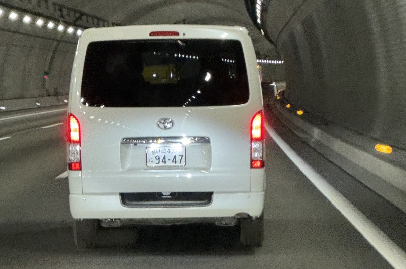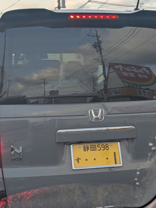 前車をあおり散らかしてたホンダN-ONE。なんか変だと思ったらナンバー灯点いてない。意図的に消してる?黄色の3373。