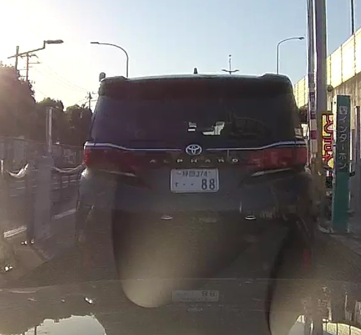 国一バイパスの合流地点にて、合流してくるクルマを阻止しようと車線またいで塞いでいたナンバー 66 ヴェルファイア。