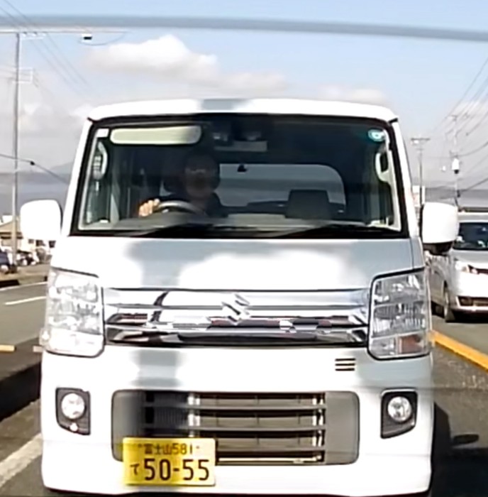 軽トラ。緑のような独特なカラー。こちらは歩行者で進路妨害された。 こちらが止まっていなければ轢かれていた。 70歳前後の男性。 富士市中島の富士高校沿いの交差点。