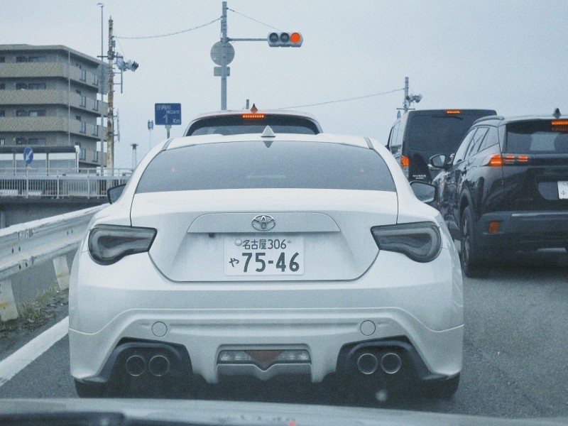 車間距離不保持おじさんが運転するリーフかノート(車体古め) ちょっと近い?と思って睨んでたら、あからさまに逃げだしたので煽ってるの自覚あり