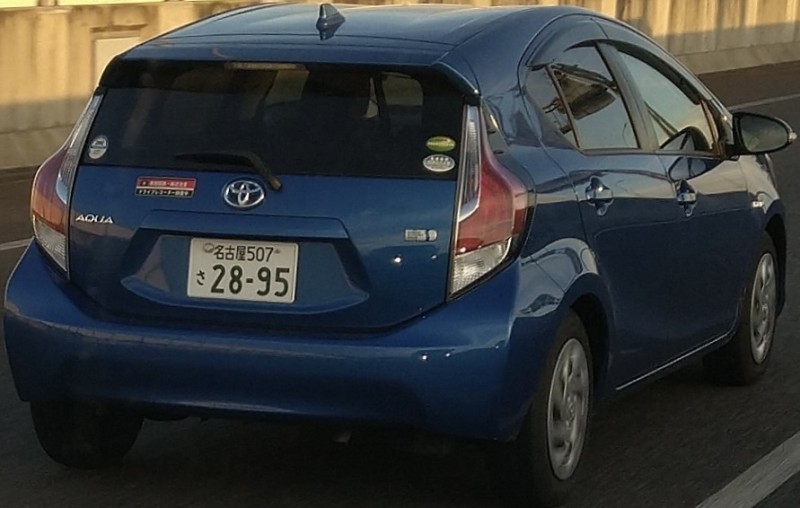 左車線に戻りたいのに不用意なブレーキを踏んで進路妨害する青のアクア。