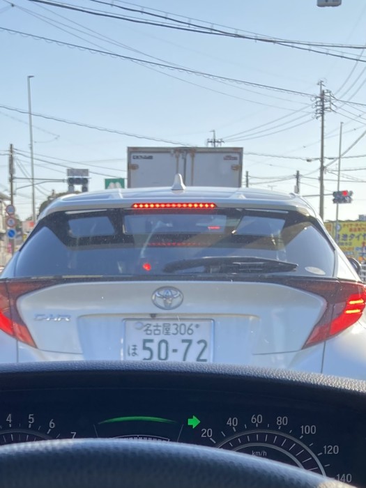 左折専用の道から直進して行く名古屋ナンバー。