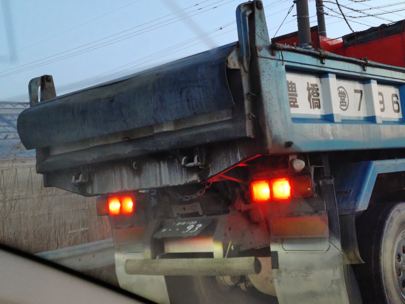 2車線で左側走行、右車線を走っていたトラックが急に左車線に強引に入ってきた
