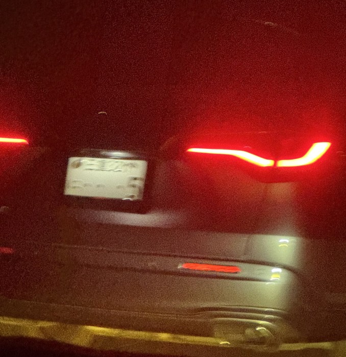 夜道、前の車との車間距離を詰適切に取り安全運転で走行中、ハイビーム、距離を詰めてのあおり運転